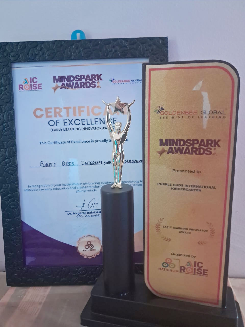 Additionally, under her leadership, the Purple Buds Agara Branch has won: The most prefered preschool in the vicinty, Radiance Preschool Excellence Award by Vibgyor for Mindful Well-being & Social Skill Champions and Early Learning Innovators Award organized by Rathinam & AIC Raise.