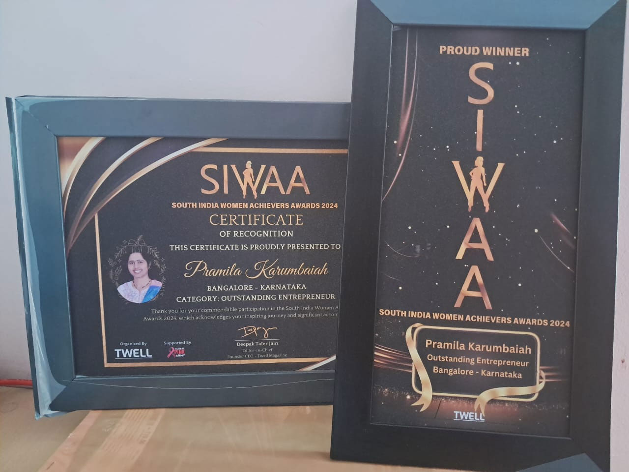 Pramila's dedication to education has earned her several prestigious accolades, including: South Indian Women Achiever Award 2024 (Outstanding Entrepreneur) , Award by She Splash, Rising Star Award, Top 100 Leader Awards, and several others.